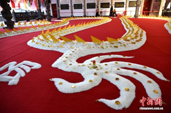 驻足高处俯瞰“米龙”,米粒粒粒分明,排布成壮观的龙身鳞甲,巨大的“龙图腾”宛如游龙穿梭。中新网记者 吕明 摄