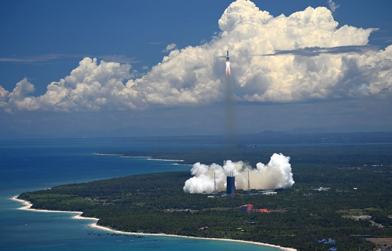2020年7月23日12时41分,我国在海南岛东北海岸中国文昌航天发射场,用长征五号遥四运载火箭将我国首次火星探测任务“天问一号”探测器发射升空,飞行2000多秒后,成功将探测器送入预定轨道,开启火星探测之旅,迈出了我国自主开展行星探测的第一步。 新华社记者 郭程 摄