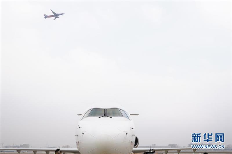 12月28日在上海虹桥机场拍摄的执飞一二三航空首航航班的国产飞机ARJ21。新华社记者 丁汀 摄