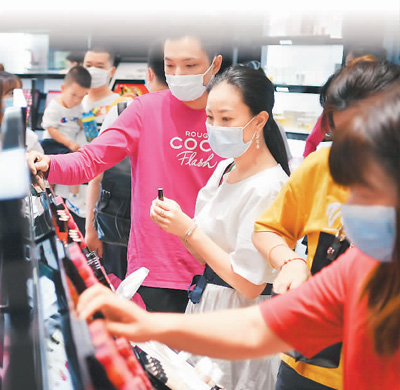 游客在海南三亚国际免税城购物。 |