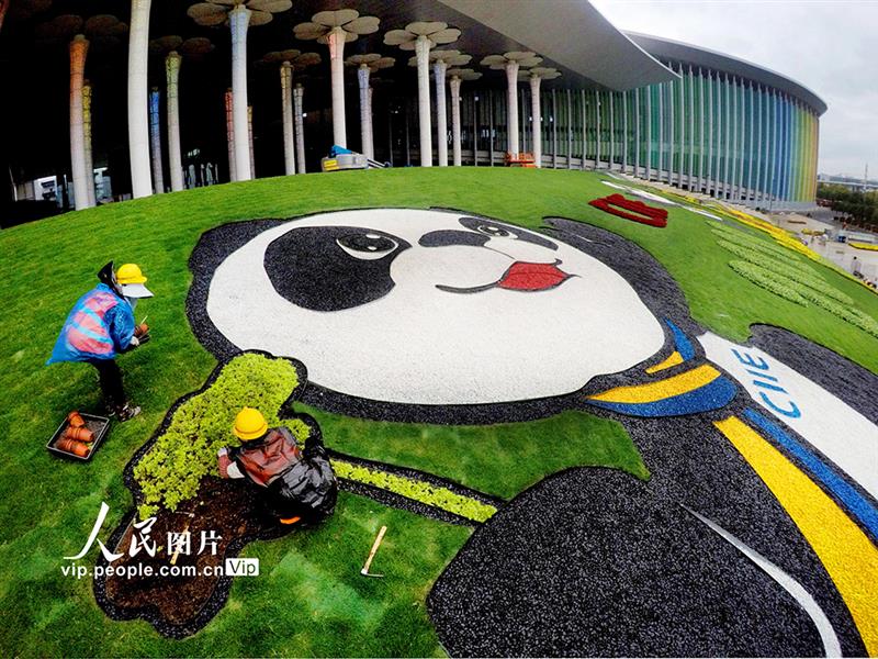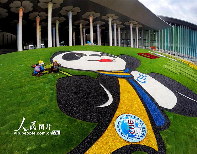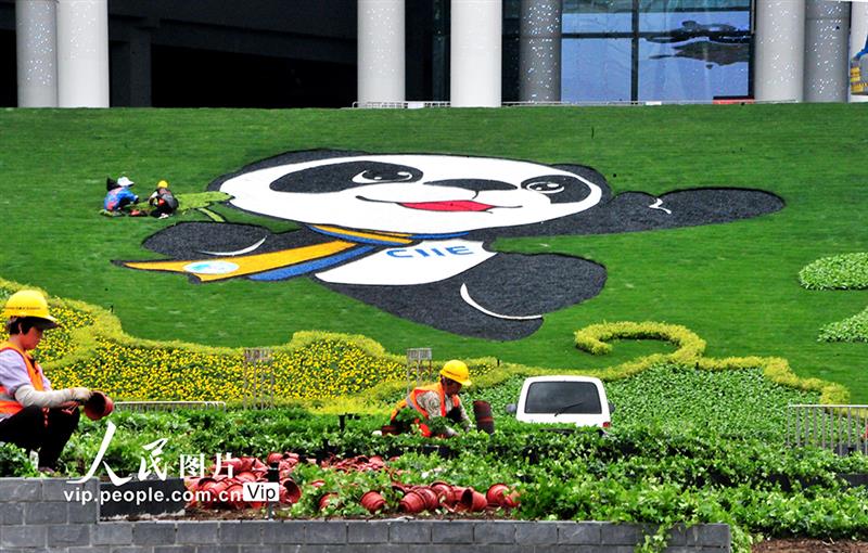 上海:进博会迎宾广场花卉迎客