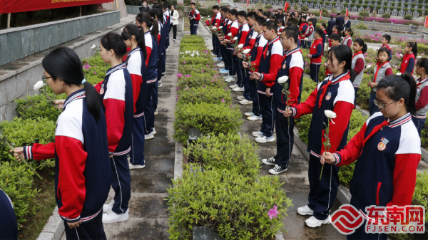 “和平勿忘先烈,幸福铭记英雄。革命先烈们不惜抛头颅、洒热血,赴汤蹈火,舍身取义,矢志不渝,献出了宝贵的青春和热血。我们要倍加珍惜现在的幸福生活,永远铭记英烈。”参加仪式活动的莆田第九中学学生唐高博动情地说。
