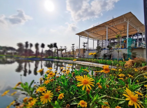该项目在地下构筑物顶层覆盖1.5m深土壤,种植深根型大株热带植物,将地上空间建设为约4.3ha的市政休闲公园。厂区环境以及休闲公园景观的整体建设既与周边地形地貌衔接协调,又与周边街心公园、绿化带浑然一体,充分体现了人与自然融合的和谐理念。此外,该项目出水执行一级A标准,尾水排入布吉河,还很好的为河道补充了生态用水。