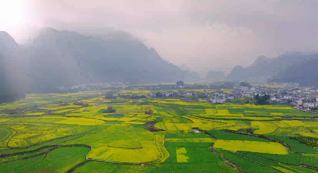 从黔西南兴义的万峰林开始,油菜花率先绽放满目金黄,放眼望去,翠绿的峰林间铺满明艳的黄,纯粹的黄,浩浩汤汤,奏响春天的序曲。