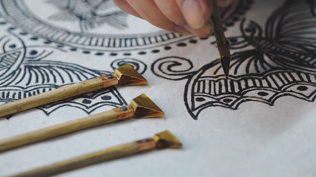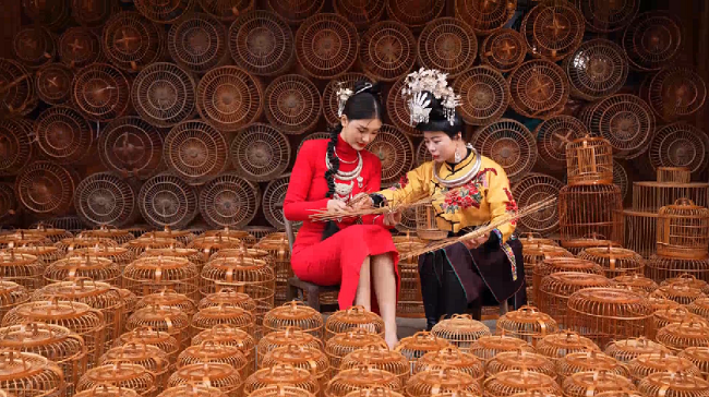 铜刀作笔,蜂蜡为墨,蓝白的纹样翻出万千变幻。叮叮当当的打银声飘出作坊的木窗,透过阳光的花草纸还带着山谷间的风。