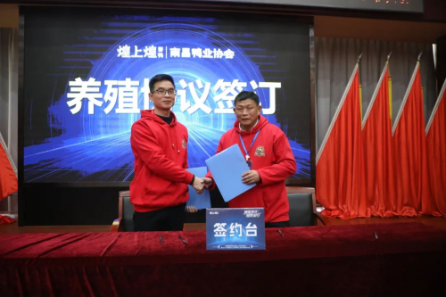 煌大公司副总经理樊友发与养殖合作社代表签订养殖协议,订立养殖计划,谋划未来工作,助力乡村振兴。