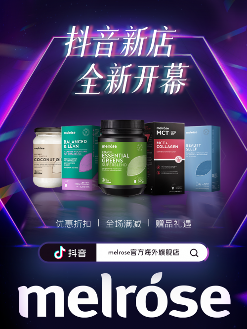 此次新开设的Melrose抖音官方海外旗舰店内陈列多款品牌人气星品,如排毒清体、提高活力的“Melrose全能绿瘦子”;加速代谢,轻盈机体的“Melrose红橙粉”;助眠美肤,一步到位的“Melrose睡美人口服液”等等,可满足广大消费者的多种健康所需。同时,品牌还通过官方直营的形式,近距离触及中国消费者,令大家足不出户便可享受来自南半球的健康食品风味。