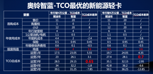 当前,物流成本居高不下,用户选购新能源轻卡时,购车成本比燃油车高5-7万,但纵观整个用车全生命周期,新能源轻卡较燃油车更具优势,如免购置税、燃料能耗成本低、保养更省心、二手车残值更高……且相较于同级新能源产品,奥铃智蓝新能源依托先进的电控系统,能够实现在相同电量下,能耗更低、续航更长、成本更低。