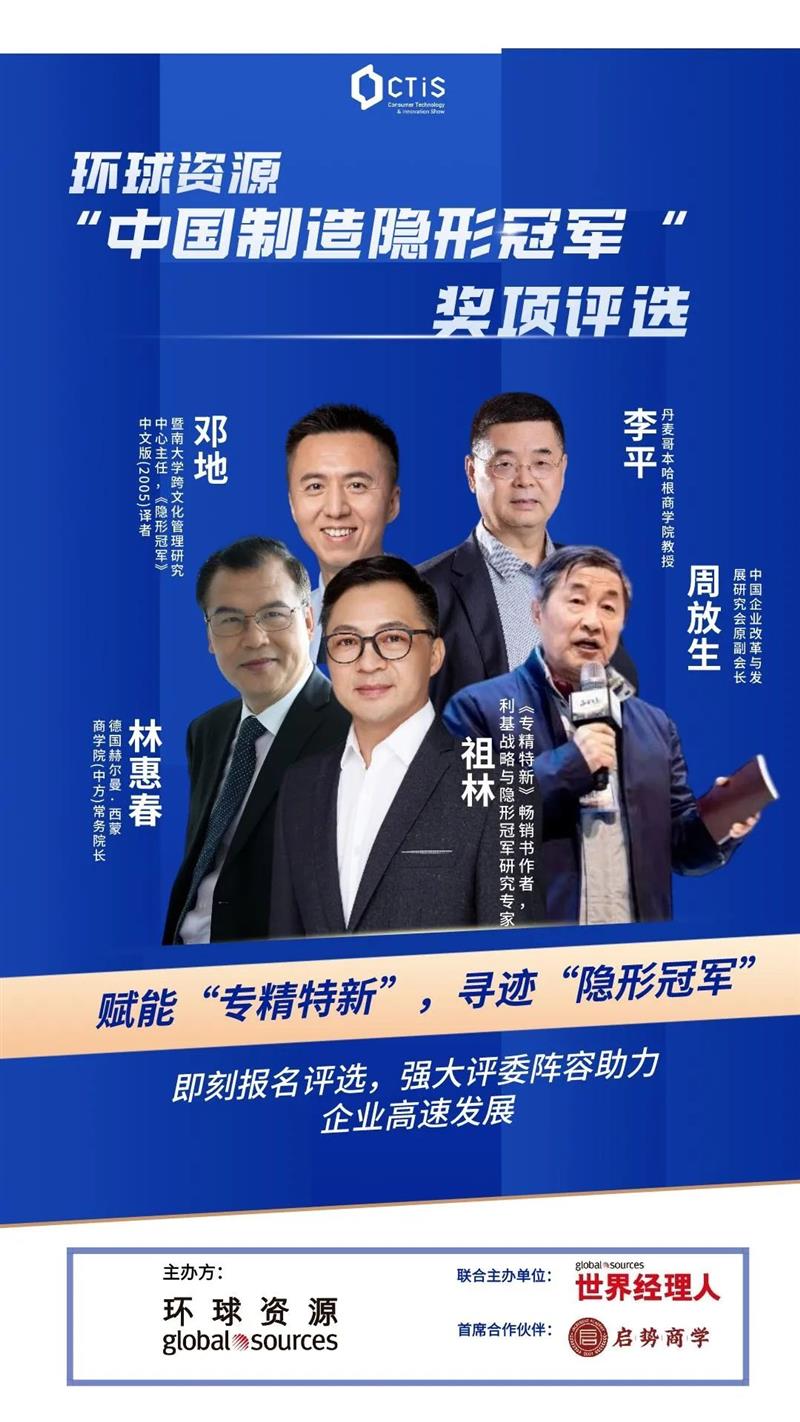 2023 CTIS第二届环球资源“中国制造隐形冠军”评选在第一届的基础上,更聚焦,更具亮点,更具竞争力!