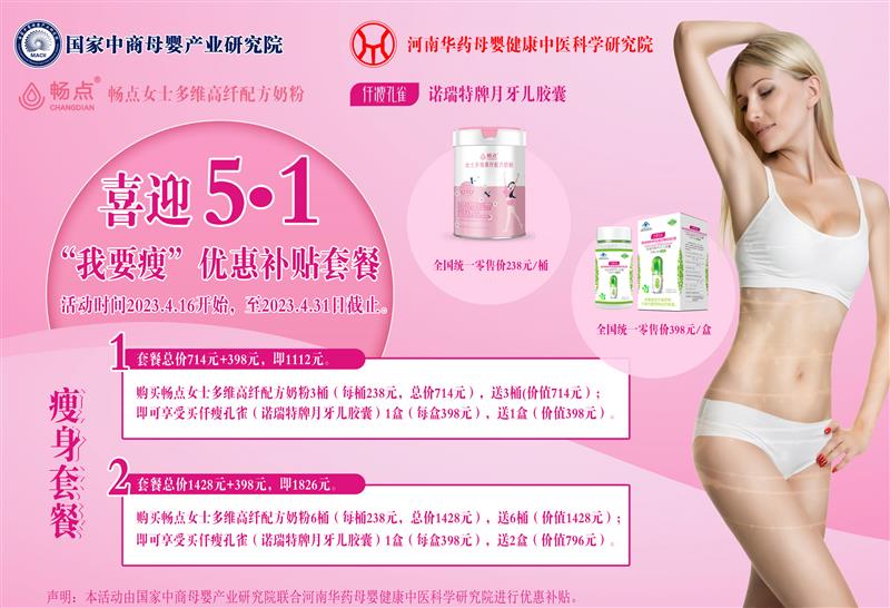 由国家中商母婴产业研究院联合河南华药母婴健康中医科学研究院共同发起的“迎5.1,我要瘦”大型优惠补贴活动,将于2023年4月16日开始,至2023年4月31日截至。