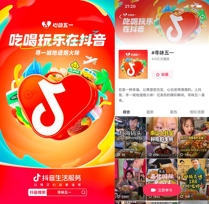 抖音生活服务「心动五一」打通“线上+线下”的经营场景,让线上好商品、好内容与线下好门店、好生活自然关联,满足了消费者和商家的不同“心动”需求,让“心动”变成“行动”,让品牌声量与生意销量共存,也为商家的节点营销打开了新局面。