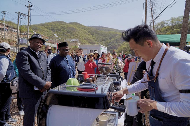 现场还有咖啡拉花师的精彩表演,人们在依山傍野的山东庄镇现场体验到制作咖啡、品尝咖啡以及学习咖啡知识的乐趣,开启了一场咖啡与娱乐融合的乡村旅游。
