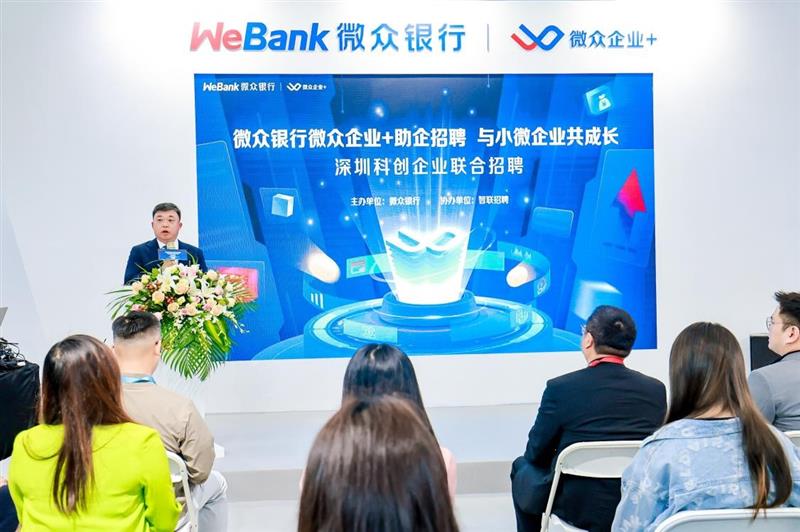 微众银行微众企业+持续深入洞察中小微企业与日俱增、不断变化的发展需求,关注到小微企业对于高质量人才的迫切需求和在引才方面的难点堵点,积极响应稳就业相关政策号召,创新地从人才服务维度出发,早在去年9月,即联合智联招聘推出2023届科创企业联合校园招聘“惠蓝种子计划”,免费为科创型中小微企业提供云上双选招聘服务,后续更推出了社会招聘和HR培训课程等多重服务。微众银行依托数字化服务能力,以及在企业服务领域的生态化思维,从招聘、培训等角度出发,借助线上线下的多种渠道,纾解引才及就业两端难题,切实为满足中小微企业人才需求做实事。在本次国际人才交流大会期间,微众企业+更邀请了11家科创企业客户在智汇全球招聘会设立“深圳科创企业联合招聘专区”,为其企业客户提供广纳海内外人才的机会,收获了相关企业的一致好评。