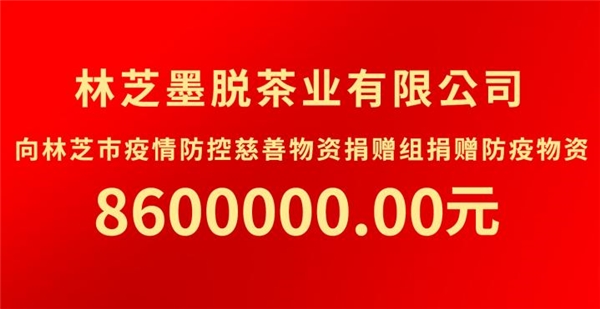 2022年9月1日,林芝墨脱茶业有限公司捐赠共价值860万元抗疫物资,以感谢自西藏疫情以来的抗疫人员们的无私奉献,为疫情防控工作尽一份力。