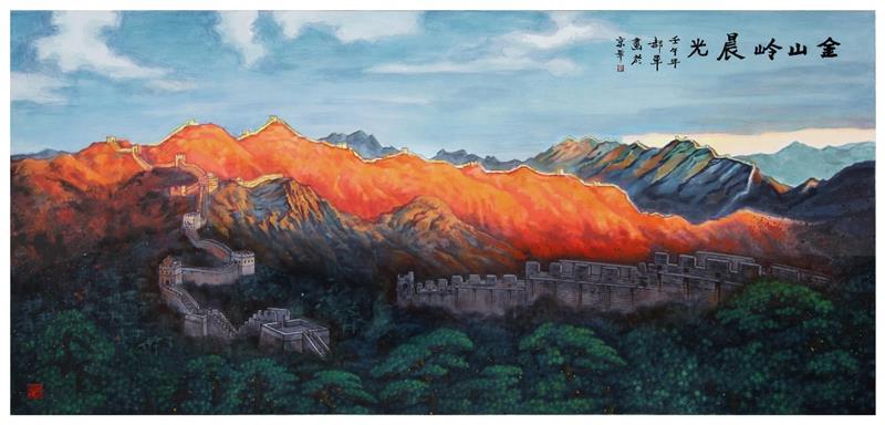 2020年至2021年,郝军接受国家任务再次创作中国画《金山岭晨光》