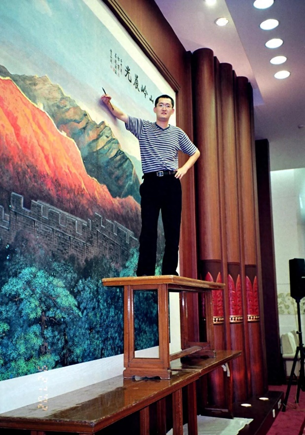 郝军在人民大会堂绘制创作《金山岭晨光》壁画