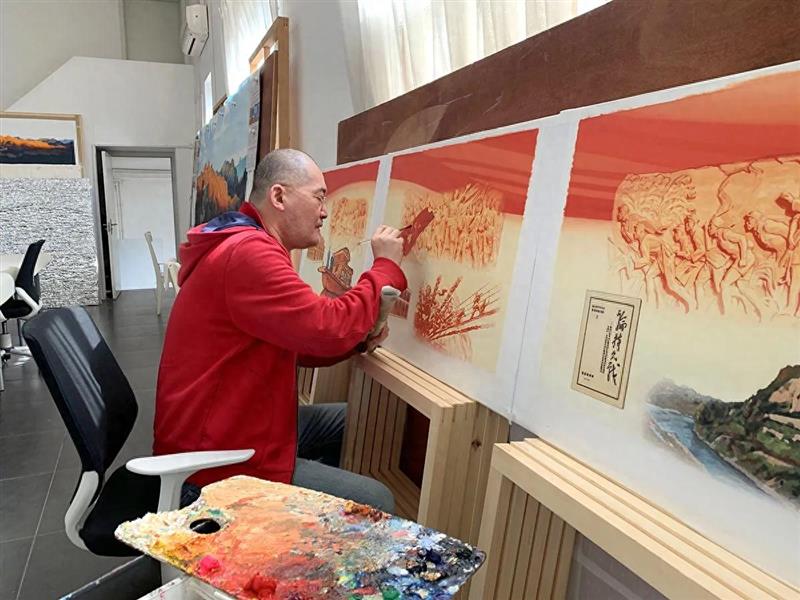 郝军采用油画表现形式绘制建党100周年纪念邮票画面