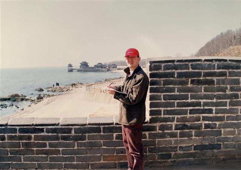 郝军为创作《金山岭晨光》壁画,沿途到长城最东边的山海关。