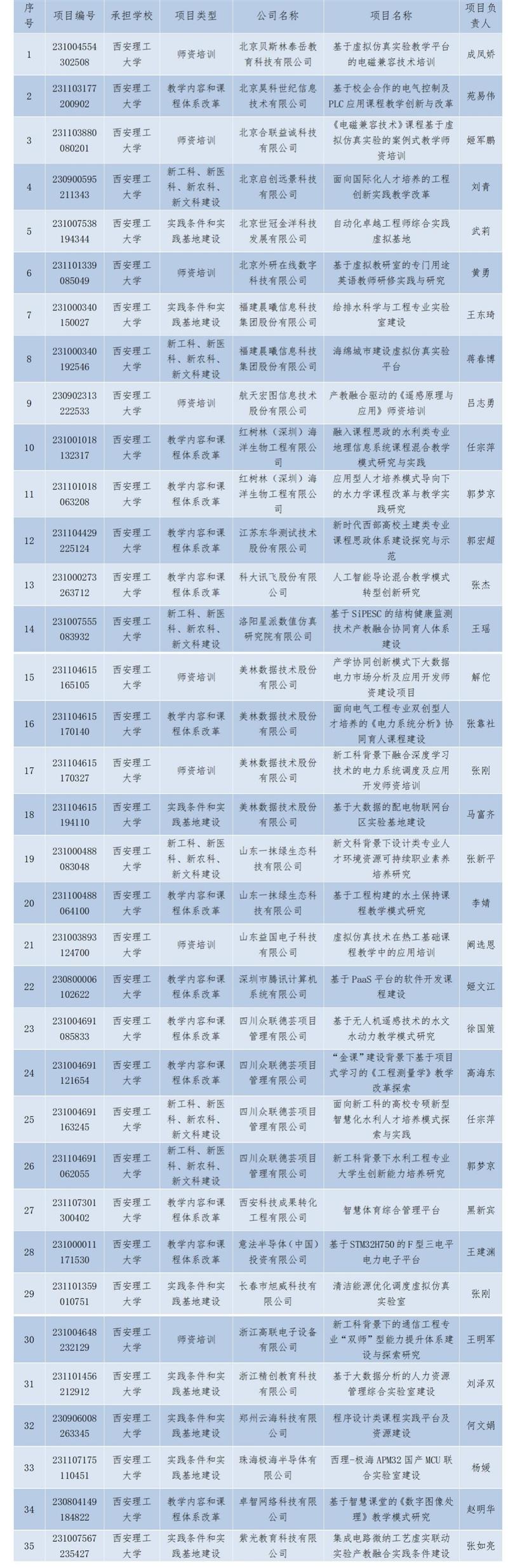 西安理工大学2024年第一批教育部产学合作协同育人项目立项名单(35项排名不分先后)