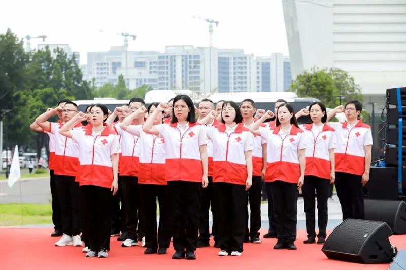 “我宣誓,我是红十字人,热爱红十字事业……”活动现场,20名身着红十字马甲的红十字工作者面向会旗庄严宣誓,重温“我是红十字人”誓词,用坚定的信念坚守红十字人的初心承诺。