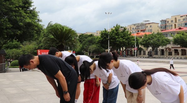 实践队在长征出发纪念碑前鞠躬