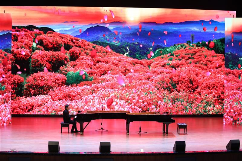音乐会由延安记忆、百年辉煌、激情青春三个篇章构成,包含《山丹丹开花红艳艳》《松花江上》《红色娘子军》等12首中国经典钢琴作品,通过钢琴演奏、歌舞、诗朗诵等多元化的舞台形式,带领观众回顾中国共产党波澜壮阔的百年奋斗历程,用文艺语言生动地讲述了党的历史,激励广大师生从党的光辉历程中汲取智慧和力量,增强砥砺奋进的信心和勇气。