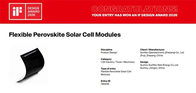 尚柔新能源斩获2026年德国iF设计奖,柔性钙钛矿开启全球化新纪元