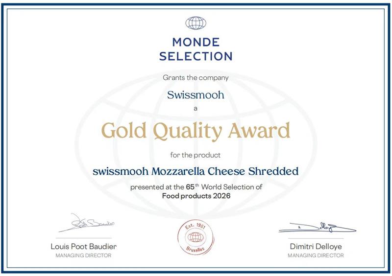 瑞士品质再获国际认可!瑞慕莫兹瑞拉干酪碎荣膺蒙特奖金奖