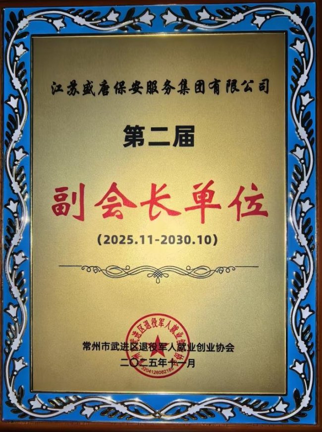 江苏盛唐保安服务集团有限公司当选常州市武进区退役军人就业创业协会第二届副会长单位