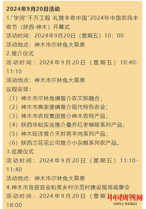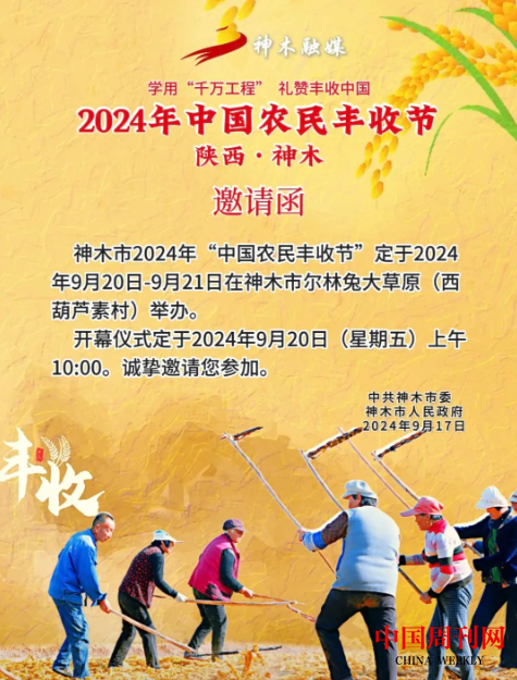神木市2024年“中国农民丰收节”于9月20日——21日在尔林兔大草原(西葫芦素村)举行