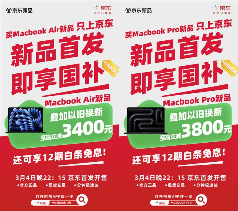 全新MacBook Pro发布 京东国补叠加以旧换新至高优惠3800元