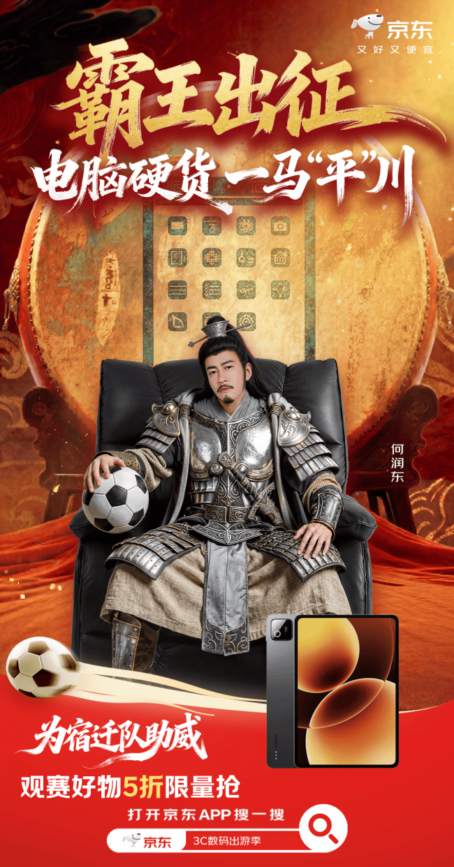 何润东化身西楚霸王助阵苏超宿迁主场 京东数码观赛装备5折抢