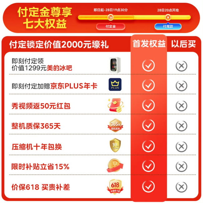 美的小冰狗冰箱京东火热预售中 付定下单就送京东PLUS会员和千元冰吧