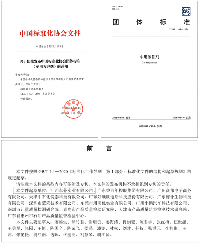 车仆主导的《车用芳香剂》团体标准正式实施,引领车载香薰行业规范发展