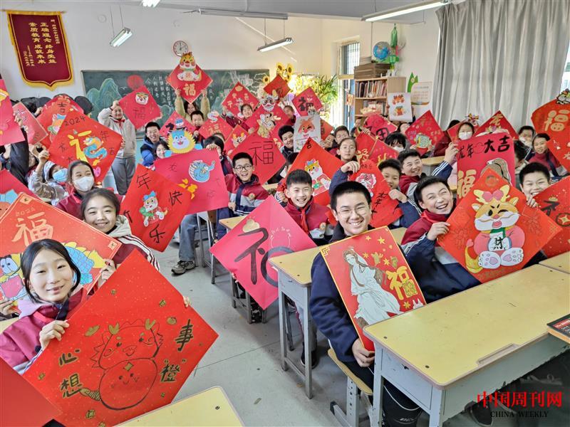 童心迎元旦 福龙满校园 :四维小学贴“福”字迎元旦活动