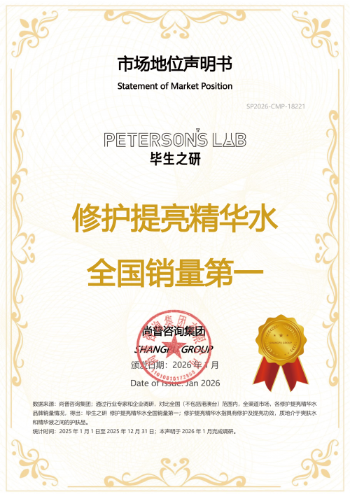 尚普咨询集团:权威市场地位声明——-毕生之研”修护提亮精华水全国销量领先”