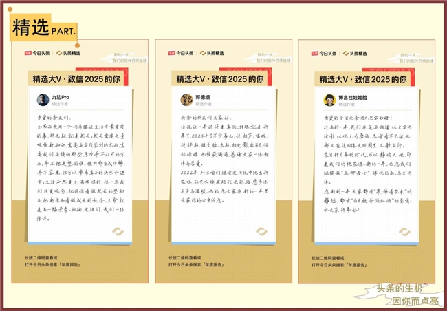 今日头条2025头条精选年鉴活动收官,12个头条精选作者温暖来信