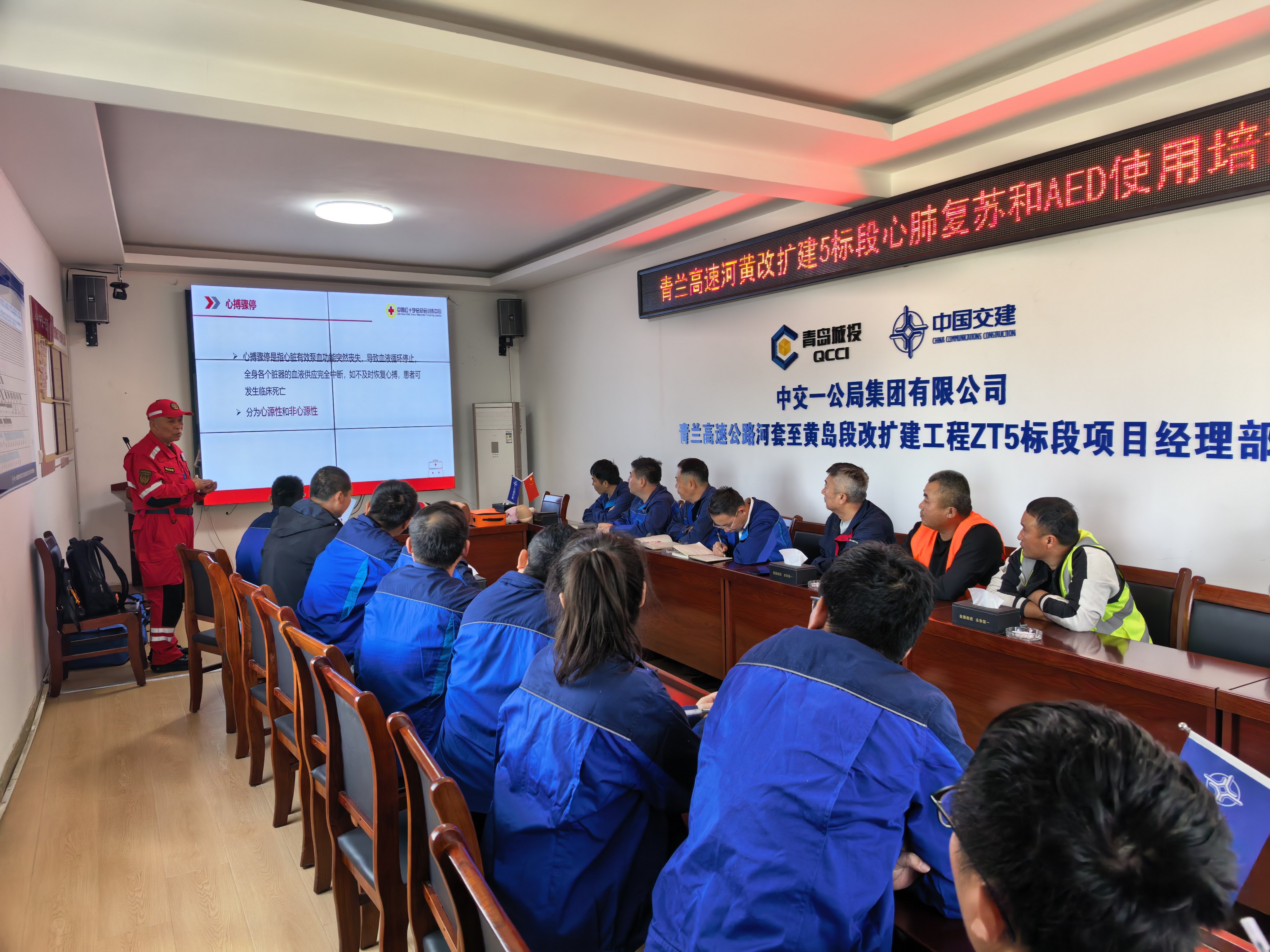 青兰高速项目组织开展车辆伤害应急演练及AED培训取证活动
