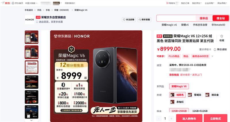 来京东先人一步参与荣耀Magic V6预售 享以旧换新至高补贴2000元