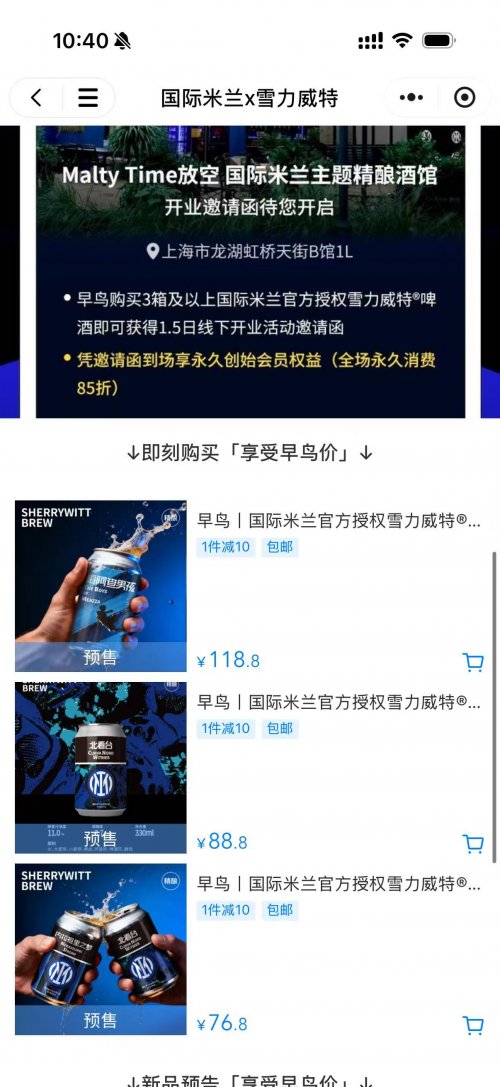 国际米兰×雪力威特联名款精酿预售开启!来国米官方小程序解锁蓝黑风味