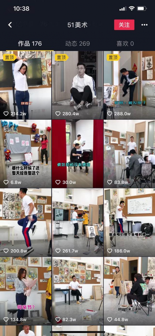 此前,51美术便是抖音上的流量大户。靠着拍摄画室内的小故事,51美术在抖音上聚集了相当数量的粉丝。