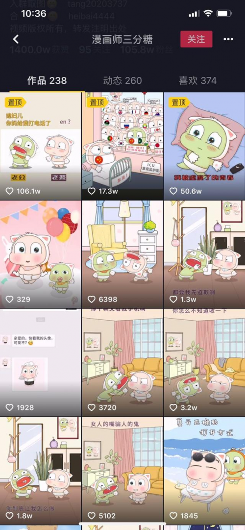 漫画三分糖的博主平时负责一家漫画公司的商业内容,特殊期间,公司全员放假,他闲来无事便开始在自己的抖音账号上持续更新漫画作品,此前这个账号主要用来记录他的画画视频。