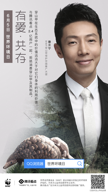 为拯救穿山甲,腾讯看点联合WWF,从人与动物的共同天性出发,唤起人类的共情,用富有创意的海报、视频和互动游戏的形式,呼吁大众重视穿山甲公益保护理念,同时呼吁将穿山甲由国家二级保护野生动物提升至国家一级。