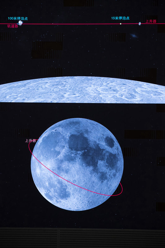 这是12月6日在北京航天飞行控制中心指挥大厅拍摄的嫦娥五号上升器与轨道器返回器组合体交会对接画面。新华社记者 金立旺 摄