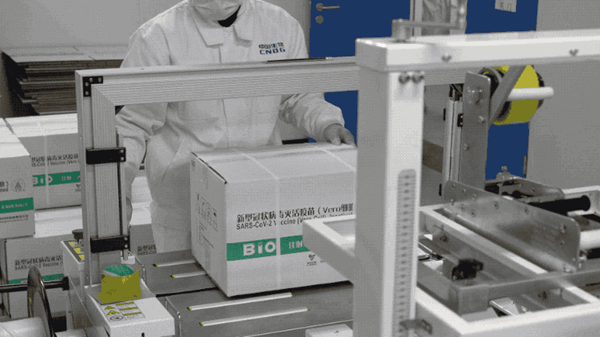 1月3日中午,在北京生物制品研究所分包装车间,工人正把24盒已经装箱的新冠病毒灭活疫苗用白色打包带封好,小心地码到身后的推车上……这是我国首个新冠病毒灭活疫苗走下生产线前的最后一步。目前,中国生物高等级生物安全生产车间年产能预计可达到10亿剂。