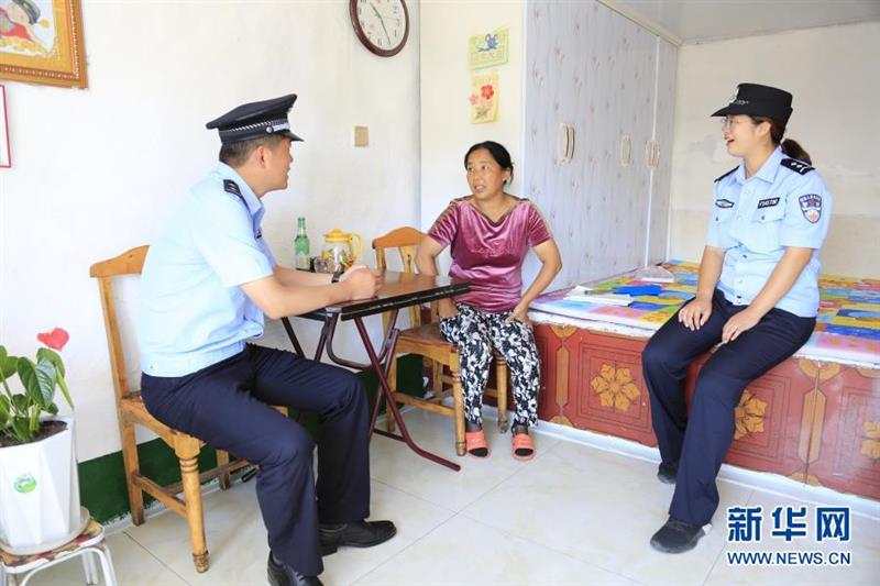 洛古河夫妻警务室“第一任主人”贾晨翔(右)在带“第二任主人”史先强在洛古河村走访入户、熟悉情况(2020年6月4日摄)。新华社发