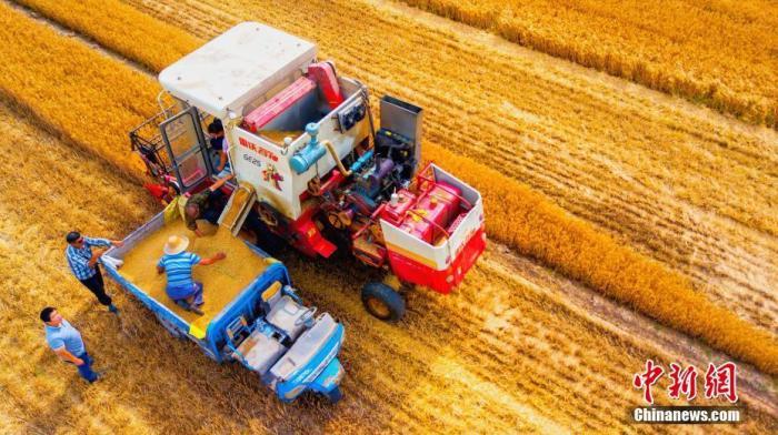 图为航拍麦收画面。宋广兴 摄