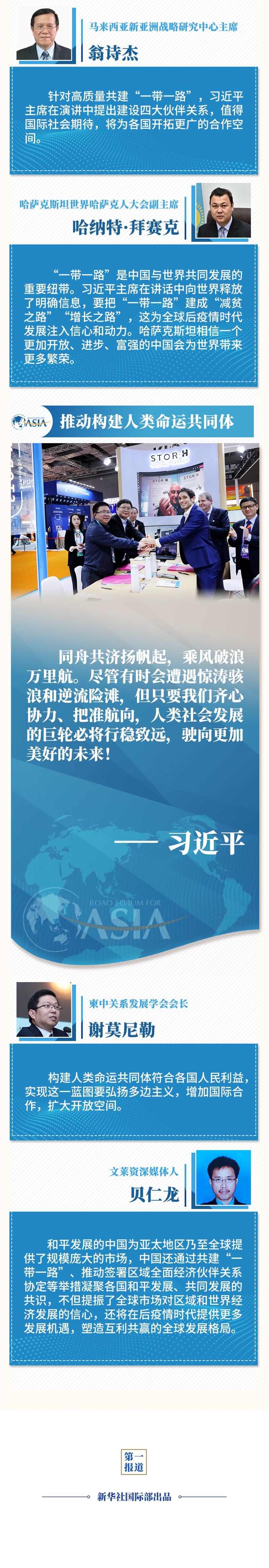 新华社北京4月21日电 博鳌亚洲论坛2021年年会开幕式20日上午在海南博鳌举行,国家主席习近平以视频方式发表题为《同舟共济克时艰,命运与共创未来》的主旨演讲。多国人士表示,习近平主席的演讲着眼于人类共同利益,为各国携手共克疫情、加强全球治理、高质量共建“一带一路”、构建人类命运共同体注入新的强大动力。