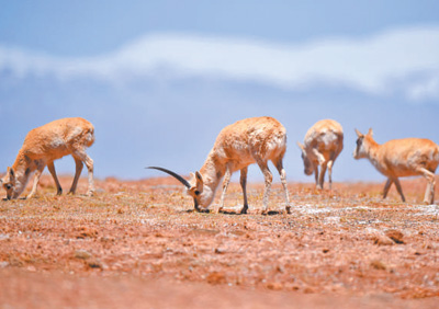 一群藏羚羊在可可西里地区活动。新华社记者 吴 刚摄