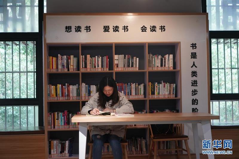 在江苏省南京市江宁区秣陵街道殷巷社区一处小区内的睦邻书房,一位女士在阅读书籍(2019年11月6日摄)。新华社记者 季春鹏 摄